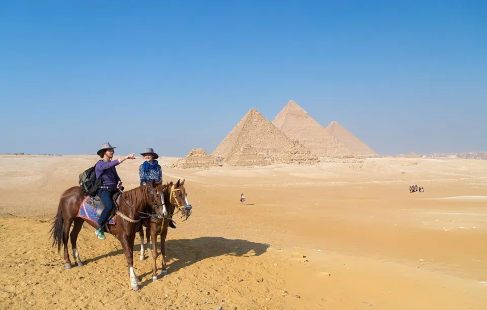 Stand in awe at the Giza Plateau, home to the Great Pyramid of Khufu, Pyramid of Khafre, and Pyramid of Menkaure — part of the legendary complex that has fascinated travelers for thousands of years.