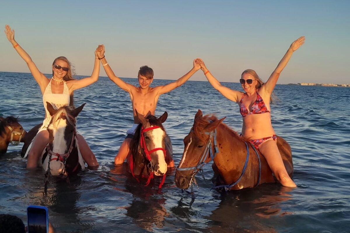 Horse riding in Hurghada is more than just an activity — it’s an unforgettable Red Sea horseback adventure that takes you from the Hurghada desert ride across golden dunes to a magical swim with your horse in the clear turquoise sea. Begin your journey on soft desert sands, feel the Arabian breeze, then gallop along the shimmering shoreline before you swim with horses in Hurghada’s Red Sea — an experience few travelers ever forget.
