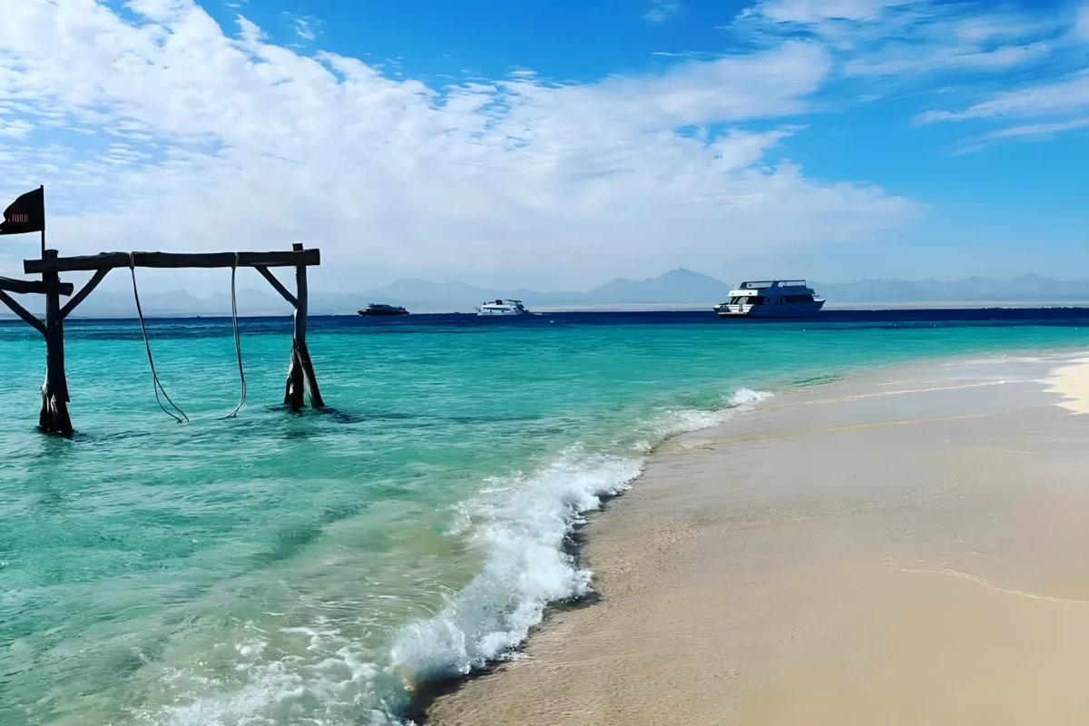 Your day begins with a smooth hotel pickup in Hurghada (pickup time may vary by location, confirmed 24 hours before departure). Head to the marina, meet your friendly crew, and board your comfortable boat excursion from Hurghada. After a quick safety briefing, set sail across the crystal waters of the Red Sea toward Hula Hula Island.