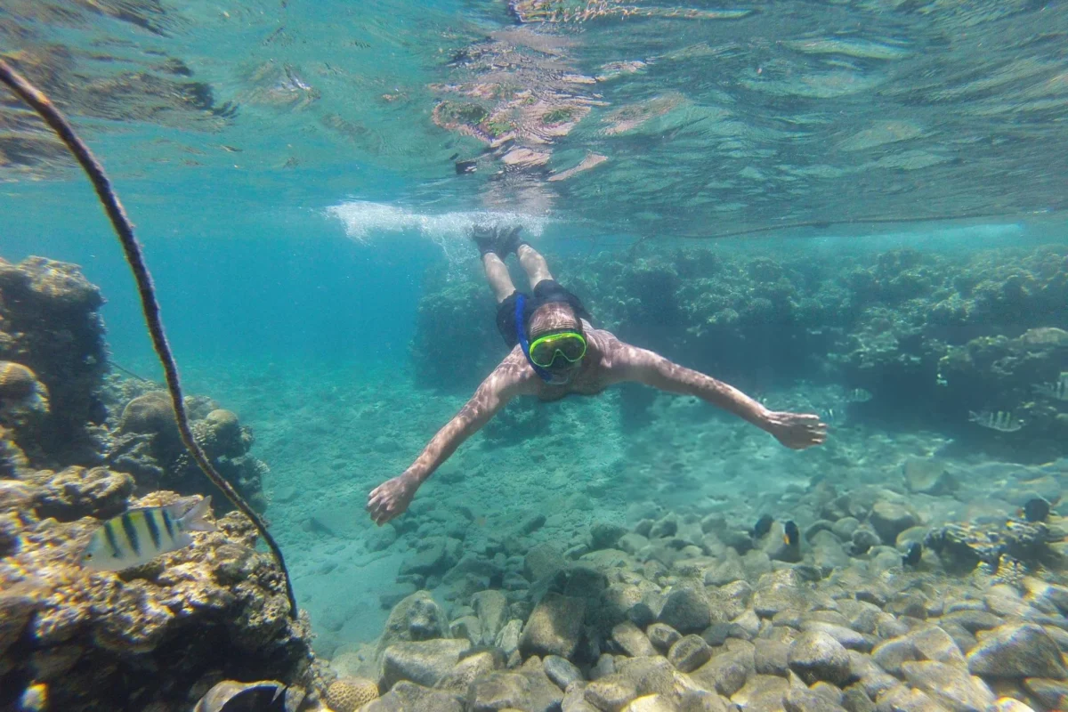 Our first highlight: explore the reefs of Ras Mohamed. Two guided snorkeling stops take you into lively underwater worlds—colorful coral formations, reef fish, and turtles. This core part of the Ras Mohamed & White Island full‑day tour is crafted for all levels of swimmers.